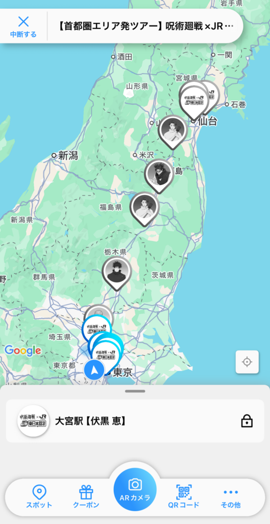JR East nutzt neben den Stempeln auch die App Locatone, die mit GPS den Standort erfasst und darauf basierend Audio-Dateien abspielt. Wenn man in der App derzeit die Jujutsu Kaisen-Strecke auswählt und die App während der Bahnfahrt einfach im Hintergrund laufen lässt, bekommt man exklusive Sprachnachrichten von den Charakteren des Anime.