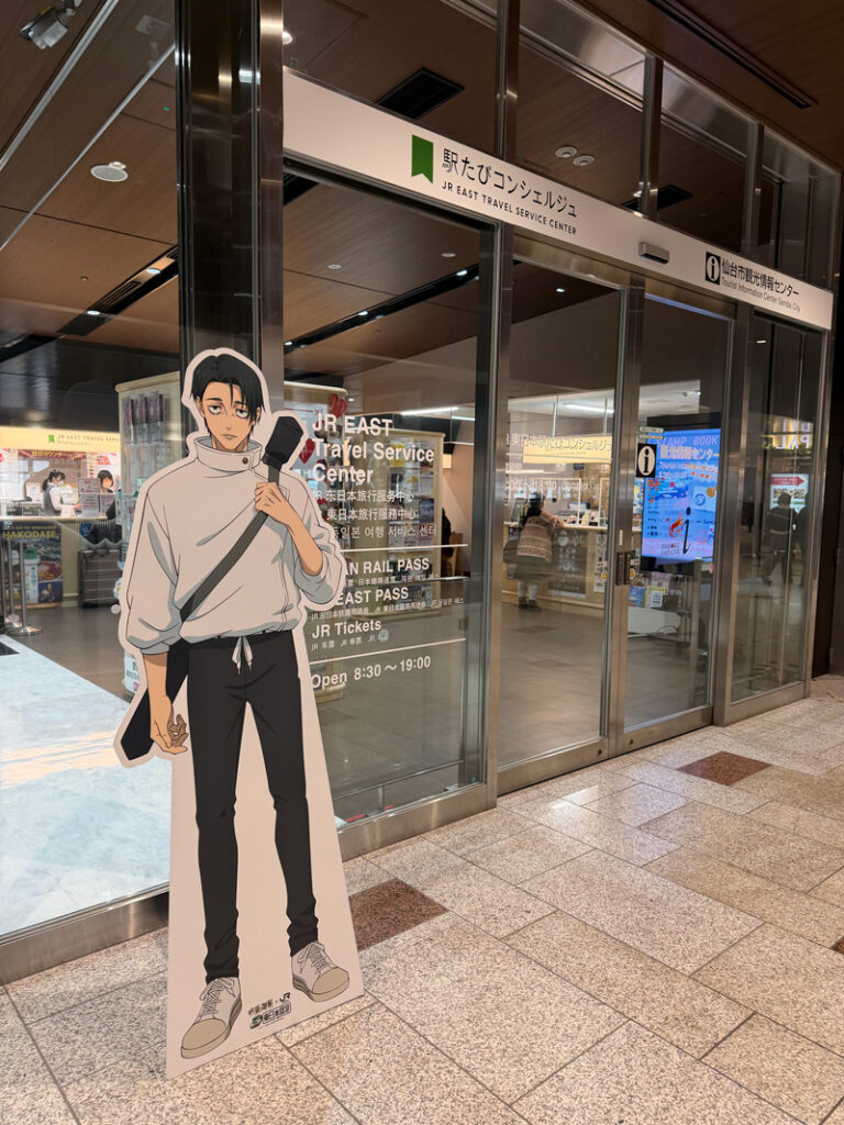Wenn man die Strecke von Tokyo nach Sendai fährt und die Nachrichten abgespielt hat, kann man danach am Informationsschalter im Bahnhof einen Schlüsselanhänger erhalten. Außerdem schaltet man auch hier wieder Stempel frei, die man auf Fotos pappen kann.
