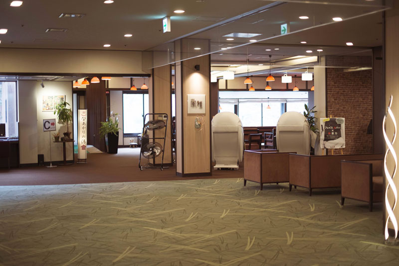 Das Hotel, Matsunoi (松乃井), ist riesig. Unser Zimmer war zwar eher klein und eng, aber bei drei Onsen-Bädern und Abendessen- und Frühstücksbuffet beschwere ich mich nicht. Außerdem konnten wir einen Karaoke-Raum für eine Stunde kostenlos nutzen. Karaoke gehört zu solchen Onsen-Hotels genau so, wie kleine Game Center und Tischtennisplatten.