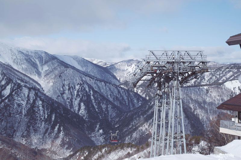 Diese ganze Gegend Japans ist Schneegebiet. Selbst Mitte März bedeckte noch eine dicke Schicht Schnee die Berge. Eine kurze Busfahrt vom Bahnhof Doai kann man mit einer Seilbahn auf den Berg hinauf- und ihn – mit dem richtigen Equipment ausgestattet – auch wieder herunterfahren. Wir hatten gar nichts dabei, aber allein über den Anblick von Schnee und den tollen Ausblick haben wir uns gefreut, wie kleine Kinder. Nächstes Jahr wollen wir unbedingt mit unserem Sohn für ein paar Tage in ein Ski-Resort fahren.