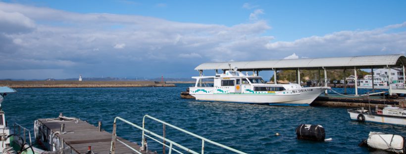 Diesmal fuhren wir am frühen Morgen mit dem Leihwagen von Kurashiki zum Hafen von Uno, wo wir mit der Fähre übersetzten. Naoshima gehört zur Präfektur Kagawa (auch eine unserer Lieblingspräfekturen), ist aber näher an Okayama. Unser Sohn war vor lauter Aufregung, auf einem echten Schiff zu sein, gerade erst zu Hochtouren aufgelaufen, als die Fähre auch schon im Hafen einlief.
